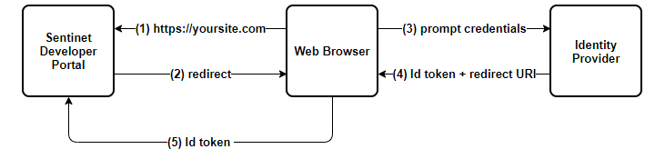 Diagram below shows interactions between user’s Web Browser application, Sentinet Developer Portal web application and Identity Provider web application.