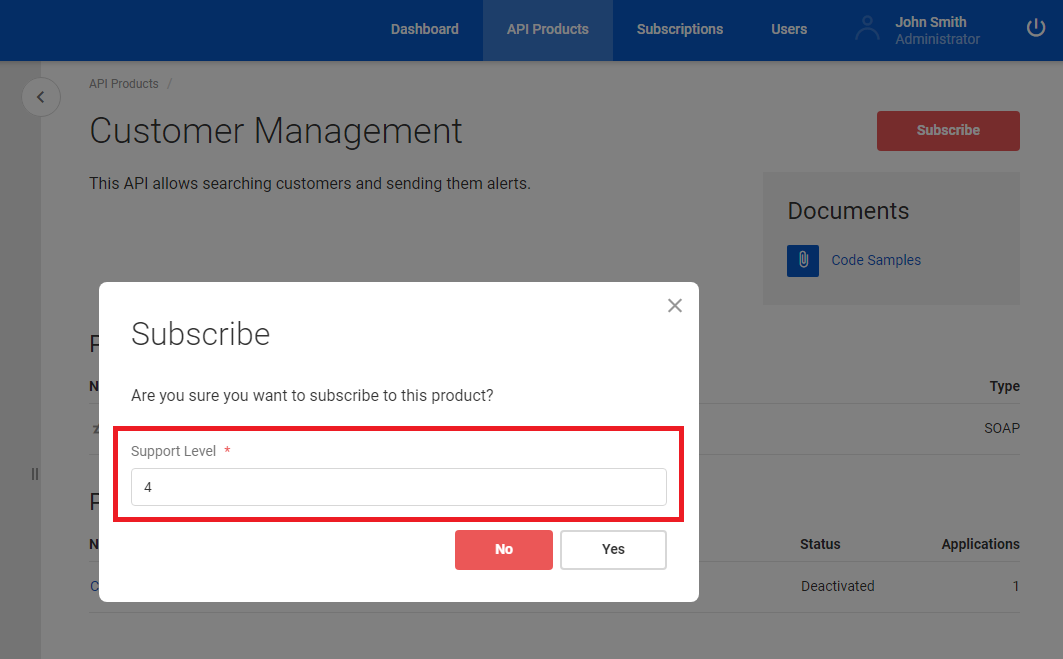 Required flag specifies if a custom field will be required or optional. If Required flag is set, then Access in Developer Portal (see below) must be set to Modify for Consumer and Subscription entities (which are typically created by the Developer Portal Users), and View for API Product entity (which is always created by the Sentinet Administrators).