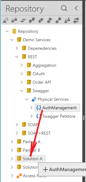 Sentinet Repository items can be re-arranged using the drag-and-drop user interface, so that services, access rules, service agreements, policies and Sentinet users can be moved (relocated) from one folder to another.