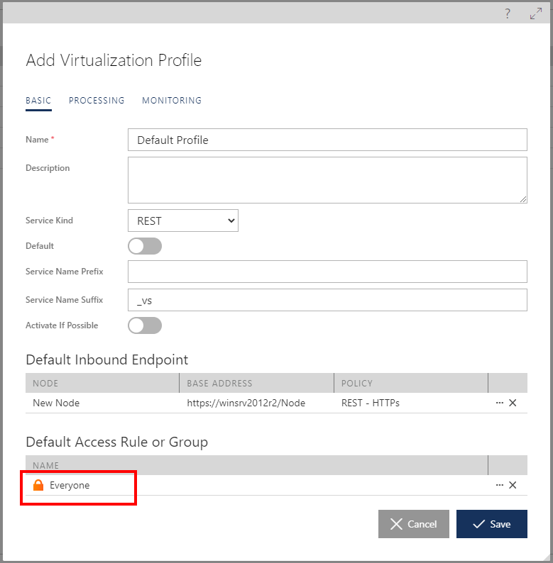 Figure. Example of Everyone Access Rule configured with the Virtualization Profile.